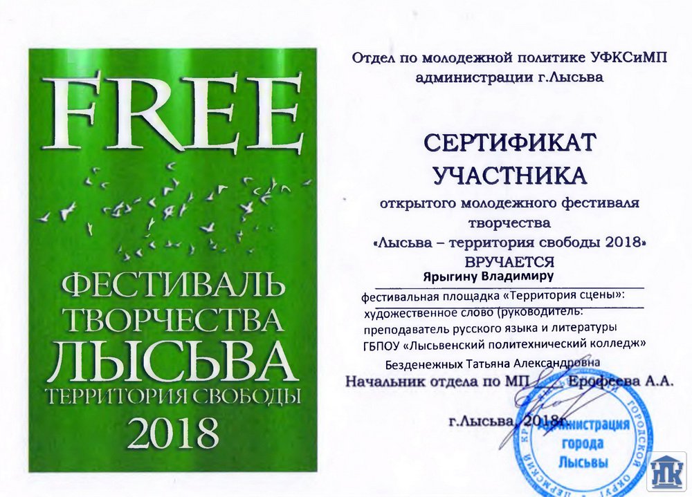 На протяжении трёх месяцев талантливые девушки и юноши нашего колледжа заявляли о себе перед лысьвенской публикой. Количество участников показало, что фестиваль нужен молодёжи.