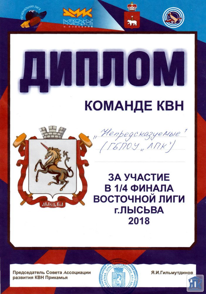 28 апреля состоялась 1/4 финала восточной лиги чемпионата КВН Прикамья. Комады КВН колледжа «Непредсказуемые» и «На счастье» прошли два конкурсных испытания – приветствие и СТЭМ. Впереди полуфинал. Удачи командам!