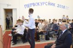 После торжественных речей традиционно слово предоставили студенческому Совету. Активисты решили не терять времени даром и сразу рассказать первокурсникам об особенностях их специальностей и в целом о студенческой жизни.