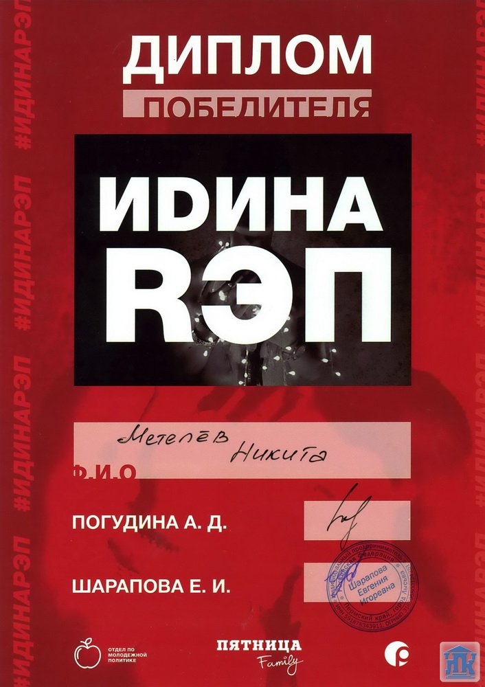 22 сентября в городе прошёл рэп-фестиваль «ИдинаRэп», в котором приняли участие 19 исполнителей данного направления. Участники представляли наш город, а также соседние Чусовой и Горнозаводск.