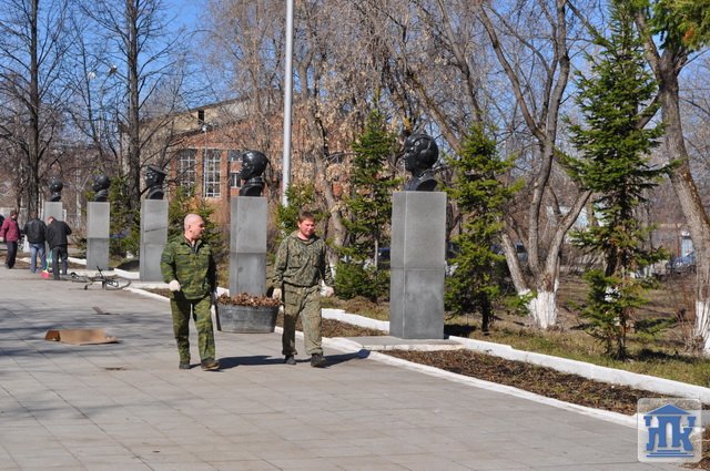 Уже несколько лет весной ветераны боевых действий в Афганистане и на Северном Кавказе приводят в порядок могилы участников Великой отечественной войны на воинском кладбище, и второй год в этой работе им помогают наши студенты группы 44ЭО. Вот и в этом году, 30 апреля, ветераны и наши ребята прибрались у Вечного огня.