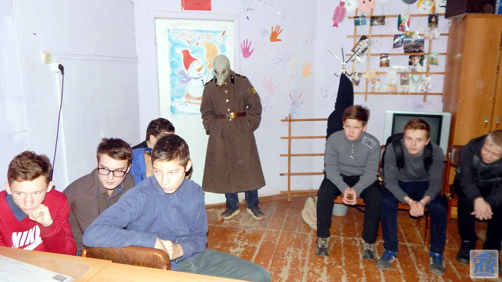 Ребят после длинной подачи звонка в строгом порядке эвакуировали в спортивный зал, где «герой» фильма ужасов предложил ребятам сыграть с ним в игру. Студентам пришлось пройти 12 испытаний по поиску ключей, на каждом этапе ребят ждали герои различных фильмов (черная вдова, джокер, утопленник, пленный солдат, привидения, скелет и т.д.), на которых им приходилось выполнить задание, чтоб получить заветный ключ.