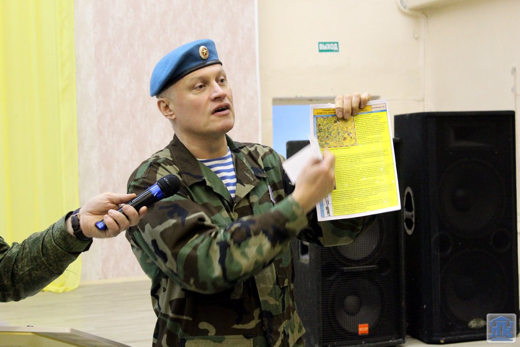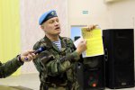 В ходе встречи будущим защитникам отечества было предложено пройти анкетирование и тестирование на знание исторических фактов подвигов русских воинов. После прохождения тестового испытания студентам и учащимся старших классов был представлен увлекательный фильм об истории создания воздушно-десантных войск.