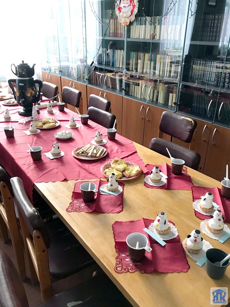 Новый год не за горами, поэтому 20 декабря мы с группой 39-16-СВ решили устроить чаепитие. Чтоб создать праздничное настроение, повесили портрет Деда Мороза, повесили гирлянды и, конечно, поставили маленькую елочку. На столе пыхтел самовар, создавая домашний уют, а забавные пирожные-снеговички напоминали о морозе. Веселые поздравления, конкурсы, призы, много смеха. Удачи вам в новом году, счастья, радости, упорства, дорогие мои ребята. С Новым годом!