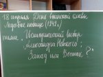 Некоторые историки представляют политику князя Александра Невского как роковую ошибку, предопределившую «не тот» путь развития средневековой Руси, а затем и России. Поэтому тема нашего занятия была: «Исторический выбор Александра Невского: Запад или Восток?».