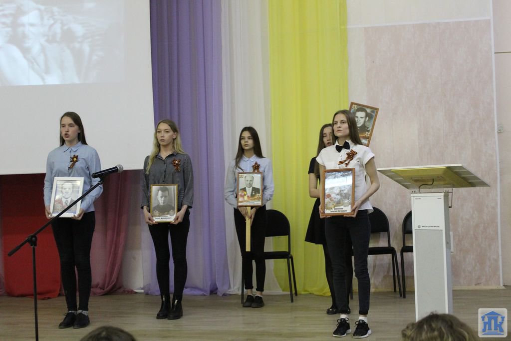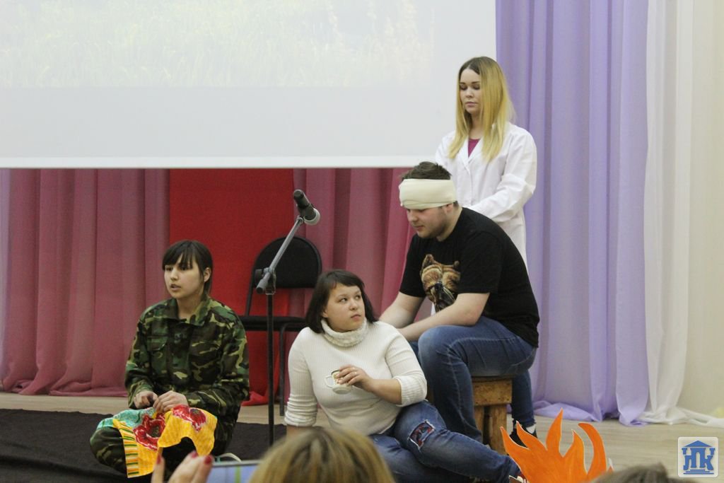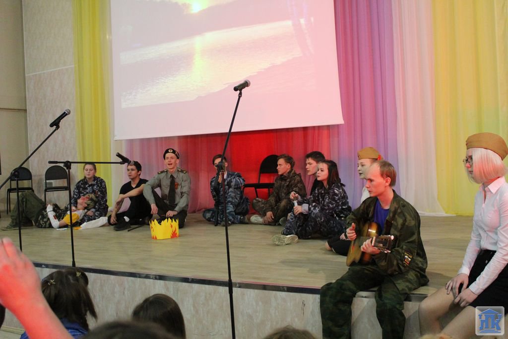 С группой 203 мы «ехали на границу», «встречали сыновей из горячей точки»; студенты 202 и 209 групп познакомили с буднями ВДВ; группа 108 выступила с литературно-музыкальной композицией к песне «Землянка». Покорила всех своим исполнением песни группа 105 «И все о той весне», занявшая 1 место. Девушки пели так, что, кажется, закрыв глаза, можно было оказаться в прошлом, «увидеть своих дедов, которые возвращались домой, а там – все цветет, природа радуется, ликует». Радость Победы смешивалась со слезами от потерь родных и близких, от горя и боли. Группа 201 пригласила нас участвовать 9 мая в акции «Бессмертный полк», исполнив песню с одноименным названием.