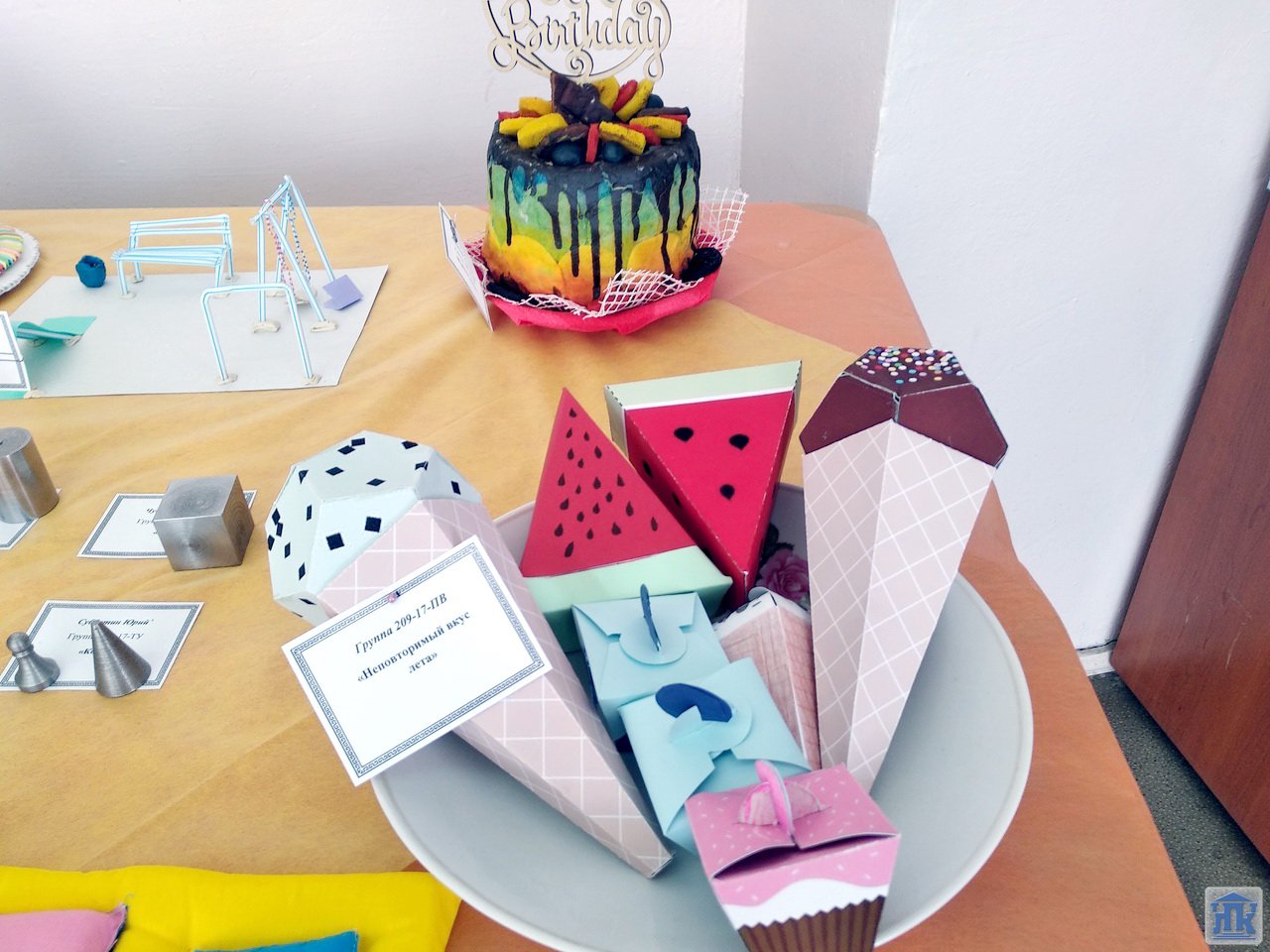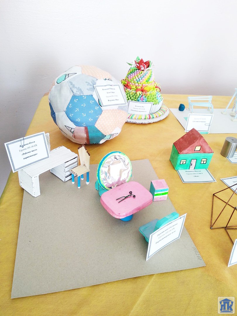Представители разных профессий приняли участие в выставке. Электромонтеры смастерили «Полупроводниковый диод», да такой, что от обыкновенной пальчиковой батарейки загоралась лампочка, повара – торт с поэтическим названием «Радужная окружность», портные умудрились сшить самый настоящий футбольный мяч и детскую игрушку-головоломку, которые точно можно использовать в развивающих играх с детьми, сварщики изготовили «Детскую площадку», а станочники выточили стальные модели многогранников. Особую оценку независимого жюри заслужили работы представителей портных Нечаевой Юлии («Кейп-трансформер»), Казаковой Натальи и Бекк Софьи («Футбольный мяч») и станочника Брезгина Ивана («Дверная ручка»). Поздравляем ребят, занявших призовые места!