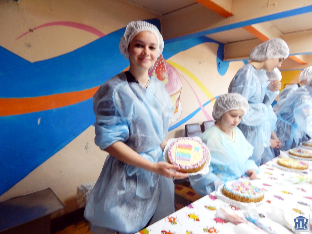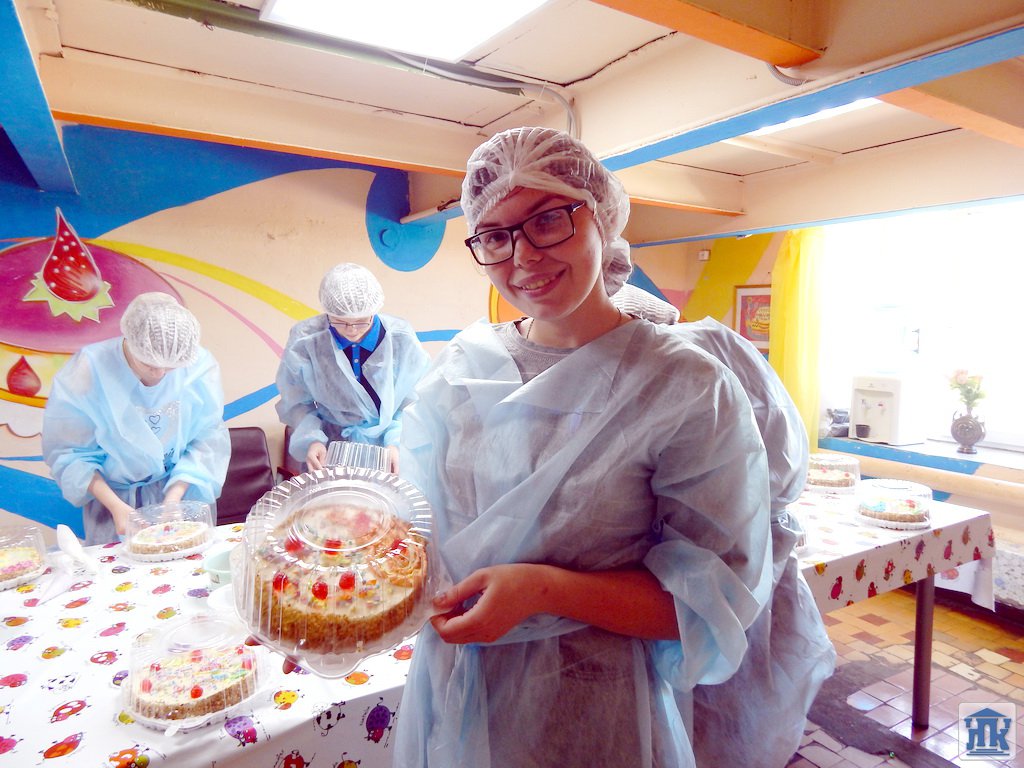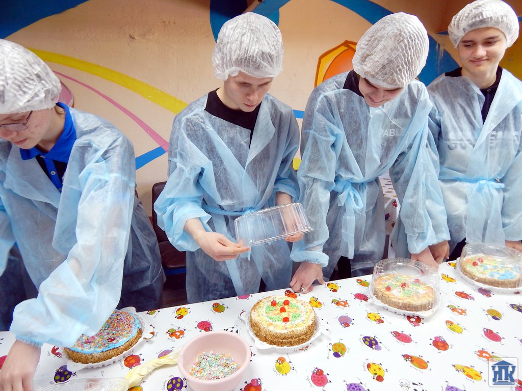 И тут ребят снова ждал сюрприз, в этом цехе каждому участнику экскурсии выдали простой белый торт, а вот каким он станет «на выходе» решат сами студенты, тем более что профессия у них творческая!