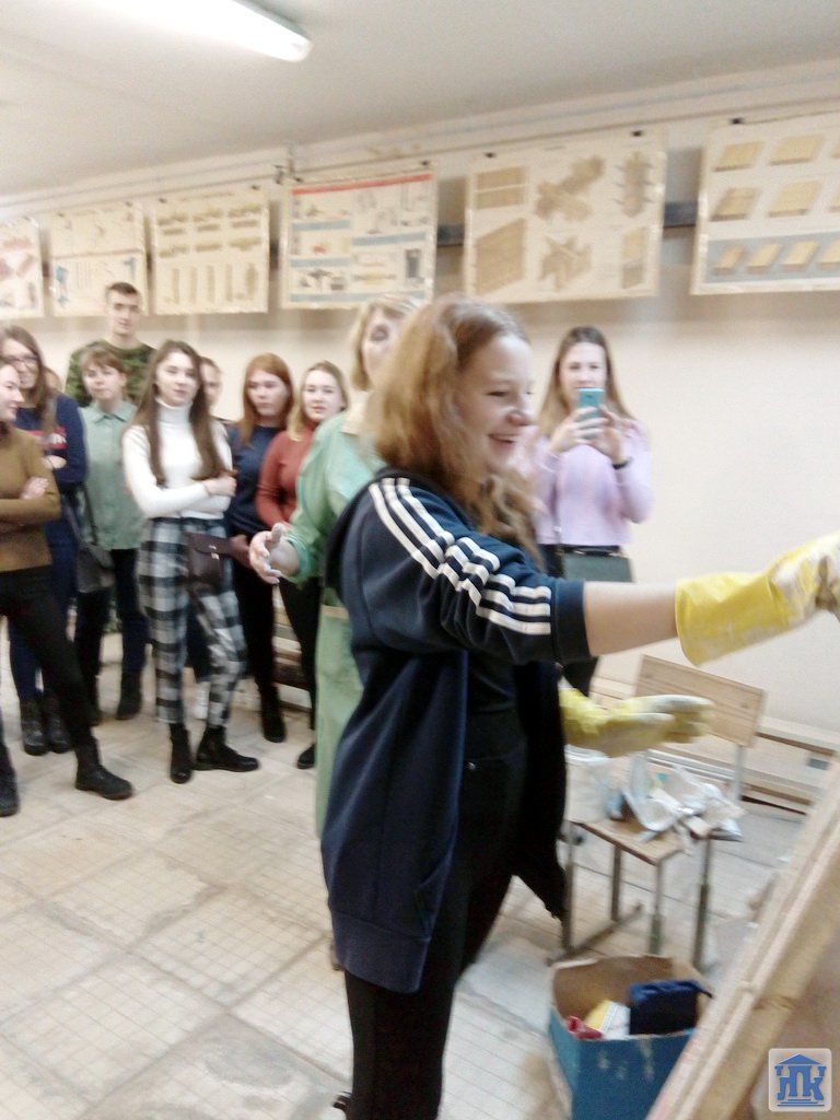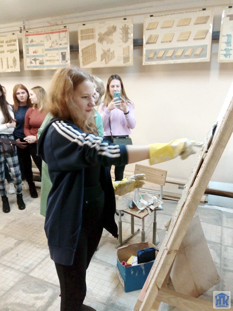 19 ноября студенты группы 37-17-УК посетили мастер-класс по строительной специальности в ЛФ ПНИПУ. Студенты увидели и попробовали сами, как можно наносить простые и затейливые рисунки по штукатурке подручными предметами и как изменяет восприятие покрашенная штукатурка. Качество штукатурки зависит от температурного режима, качества материалов и времени выполнения работ. «Нарушение технологии недопустимо в строительных работах!» – сделали вывод будущие специалисты по управлению качеством.
