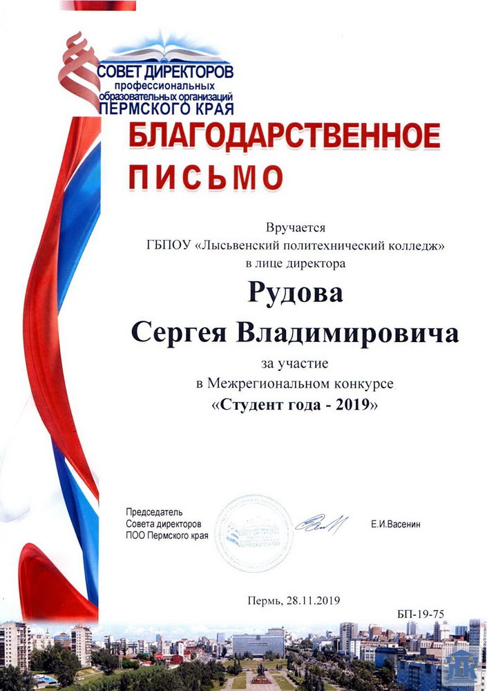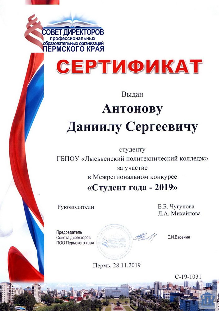 28 ноября в Пермском радиотехническом колледже проходил межрегиональный конкурс «Студент года – 2019». В нем принимали участие 32 учебных заведения не только города и края, но еще и других регионов РФ. Представлять наш колледж выпала честь студенту 3 курса группы 300-18-ПР Антонову Даниилу. Кандидатов проверяли с разных сторон: эрудиция, способность выступать перед большой аудиторией, умение представить себя в видео-визитке и на сцене. Конкурсные испытания проходили целый день, и в финале мероприятия жюри объявило результаты состязаний.