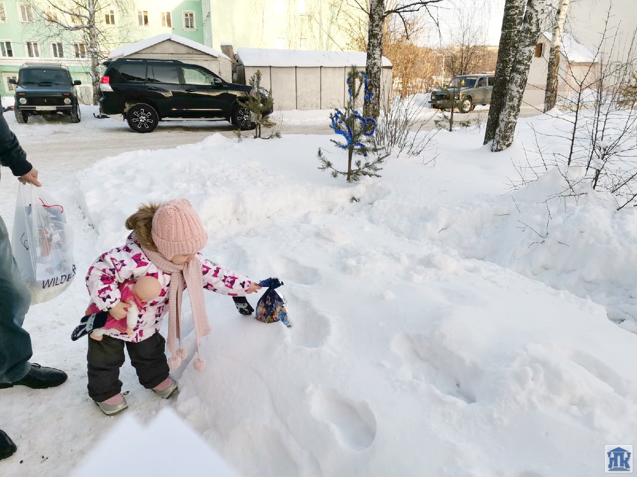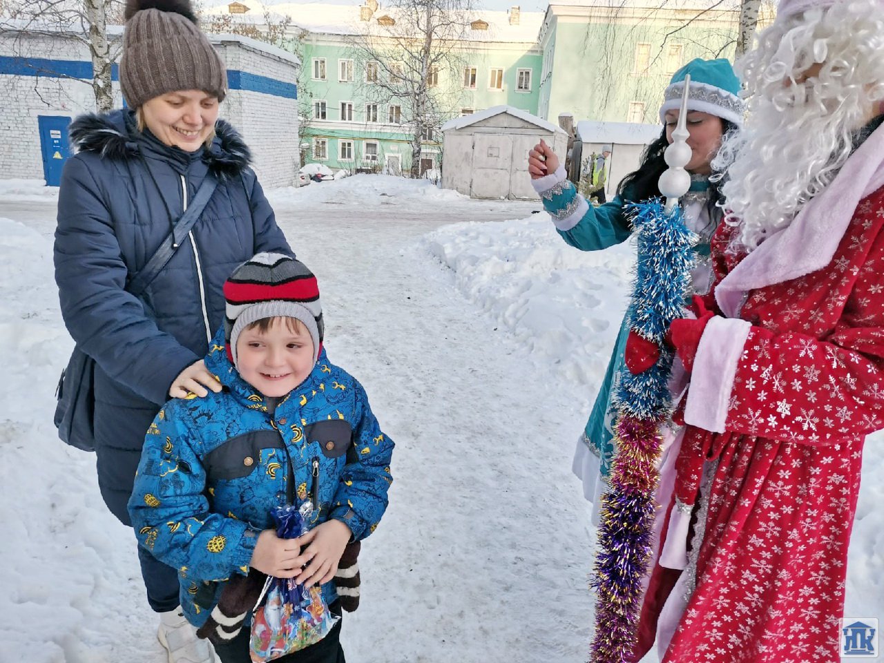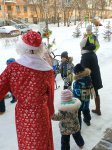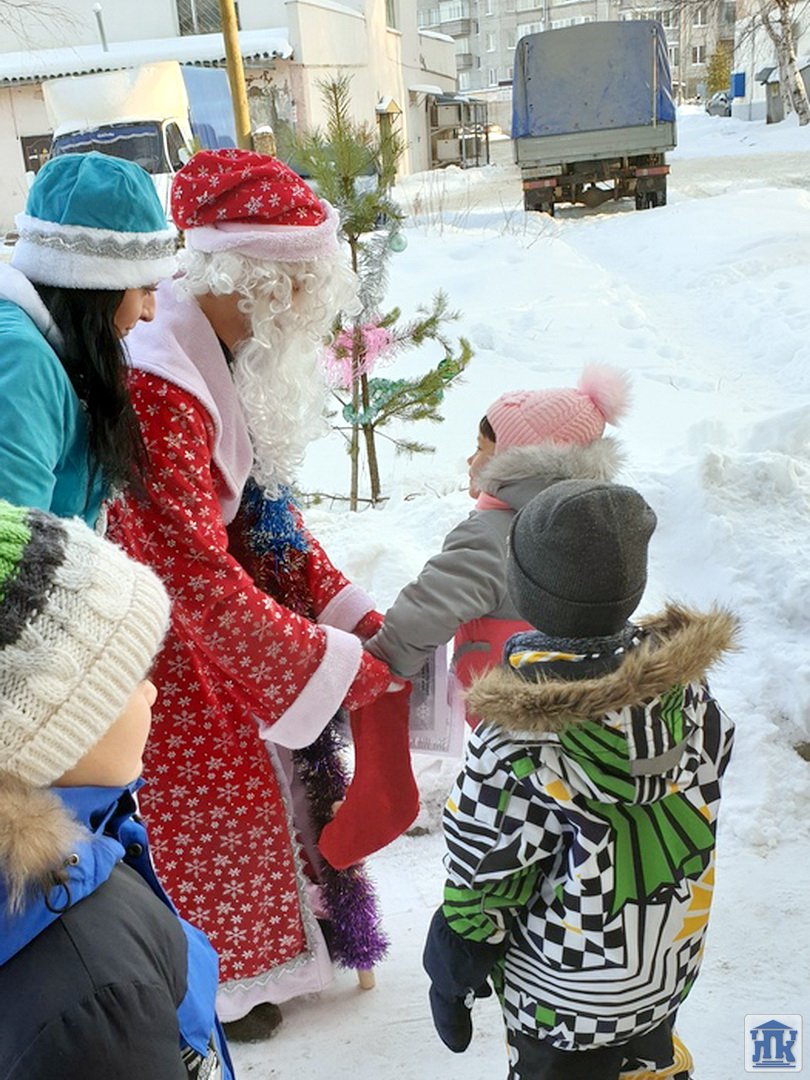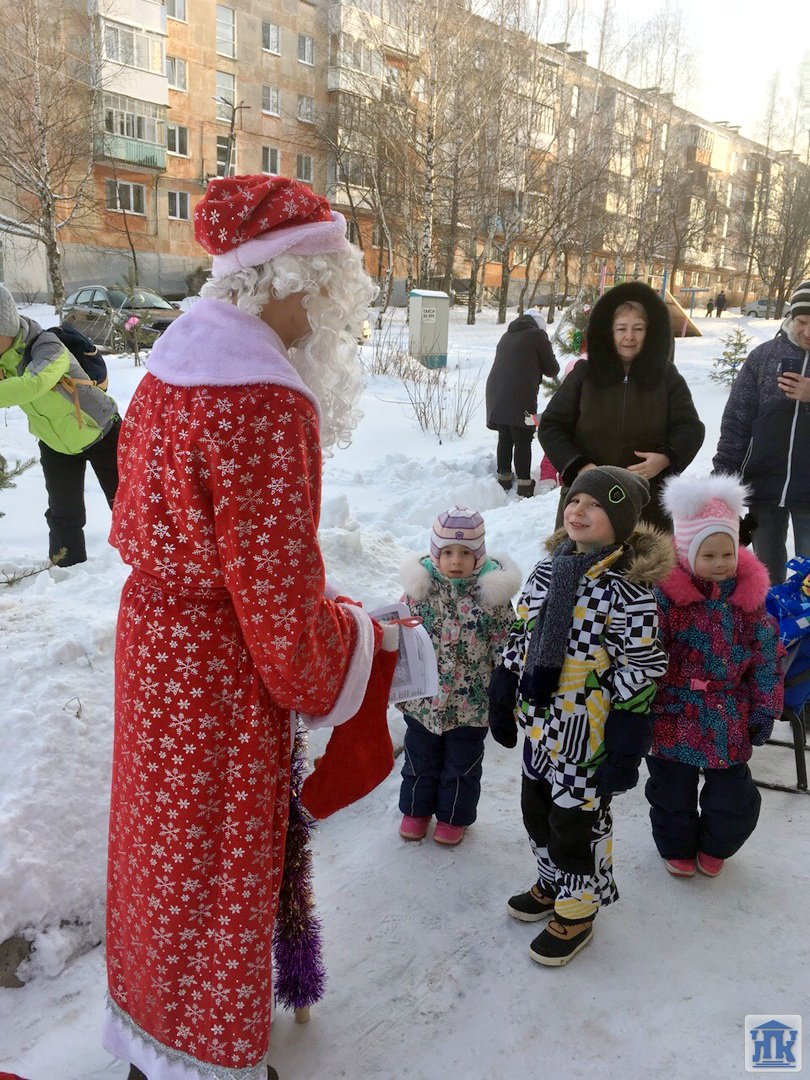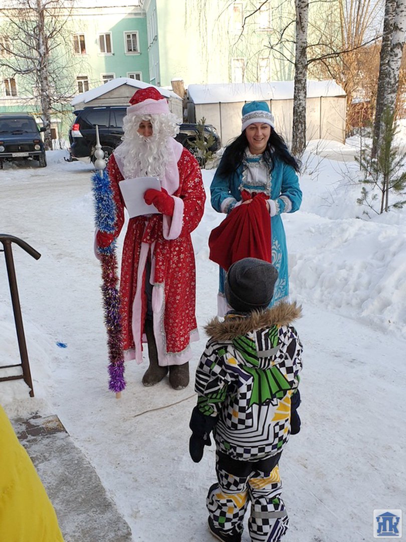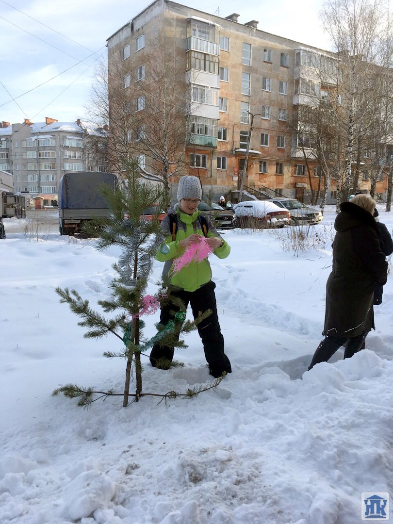 27 декабря Людмила Аркадьевна Михайлова в роли Снегурочки и Максим Ярославцев в роли Деда Мороза наряжали с детишками елочки на «Аллее отцов» у детской поликлиники в рамках социального волонтерства.