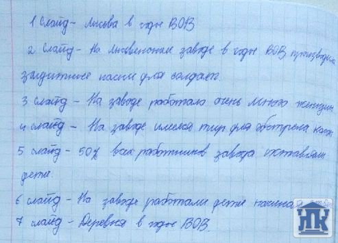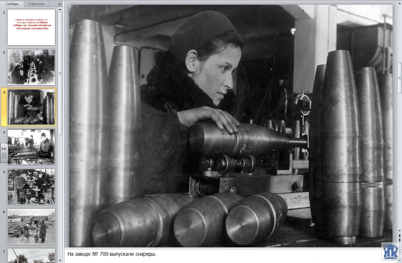 Услышали рассказ Сковординой Татьяны Ивановны о детях войны, которые встали за станки наравне со взрослыми, что на время войны были отменены все выходные, все праздничные дни, все больничные, все отпуска. Опоздания от пяти до двадцати минут каралось четырьмя месяцами тюрьмы. Прогул сулил работнику семь лет лагерей, причем как военному преступнику, пособнику фашистам. До конца 1943 года зарплату на руки не получали – в день её выдачи работники расписывались в двух ведомостях – что получили и что сдали на нужды фронта. При этом от желающих помогать, работать в несколько смен, за себя и за тех, кто ушел на фронт, отбоя не было. Не за деньги и награды, а ради одной Победы, руками сотен людей делались снаряды, котелки, ящики для пороха, защитные приспособления.