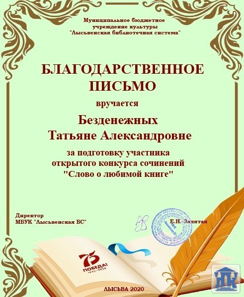 » » Муниципальный конкурс сочинений «Слово о любимой книге»