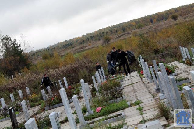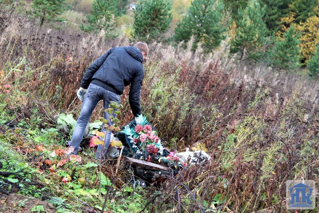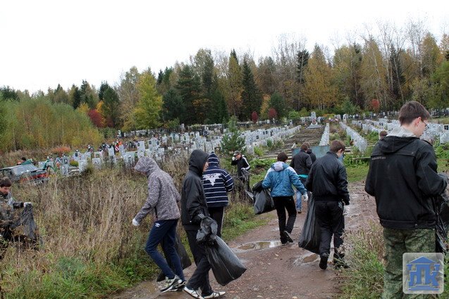 Каково было удивление студентов и преподавателей, когда они увидели мусорные залежи еще задолго до начала кладбища. Первая территория для уборки – воинское кладбище. Кучи мусора, старые деревянные кресты и венки удивили своим объемом. Сложилось впечатление, что люди, которые приходят на кладбище к своим родственникам, вовсе не задумываются о том, что они оставляют там после себя. Дорогие родственники умерших, как можно, установив новый памятник, тут же бросить старый крест! Ведь это просто неуважение к памяти своих родных! Все кладбище просто усыпано пластмассовыми бутылками, стаканчиками и пустой тарой от спиртных напитков, как после массовых праздничных мероприятий.