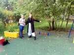 Студенты с удовольствием прыгали с ребятишками на скакалках, бегали на перегонки, рисовали мелками и просто наслаждались общением друг с другом. Детишки получили сладкие призы, а студенты – огромный опыт, который, несомненно, пригодится им в их будущей профессии.