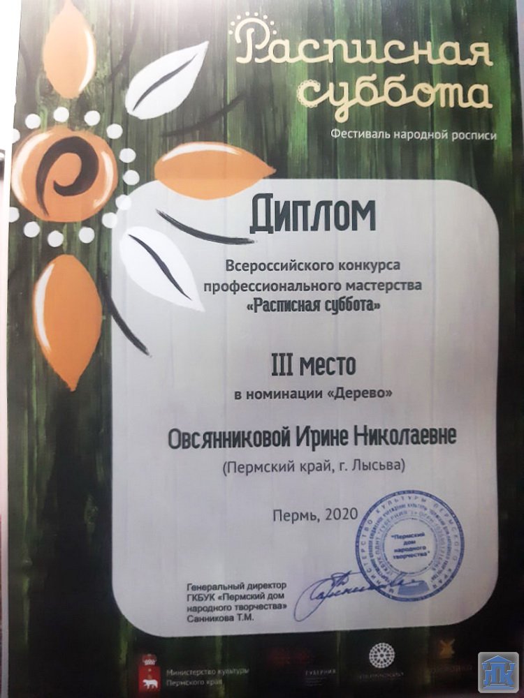 Поздравляем мастера производственного обучения Ирину Николаевну Овсянникову с почетным 3 местом во Всероссийском конкурсе-фестивале «Расписная суббота».