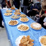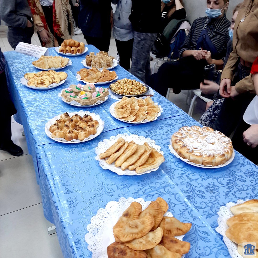 На представленном столе были различные хлебобулочные и кондитерские изделия, приготовленные студентами из дрожжевого и бездрожжевого теста, слоеного, песочного, заварного. Хлебные ароматы навевали воспоминания о русском быте.