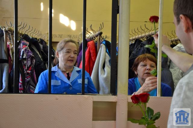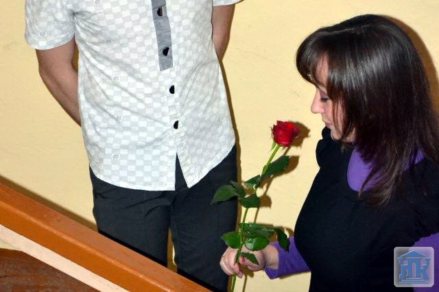 Само поздравление тоже получилось веселым. Студенты неожиданно заходили на урок, пели поздравительную песню и вручали цветы и открытку. Преподаватели не скрывали улыбки, а кто-то даже пустил слезу радости.