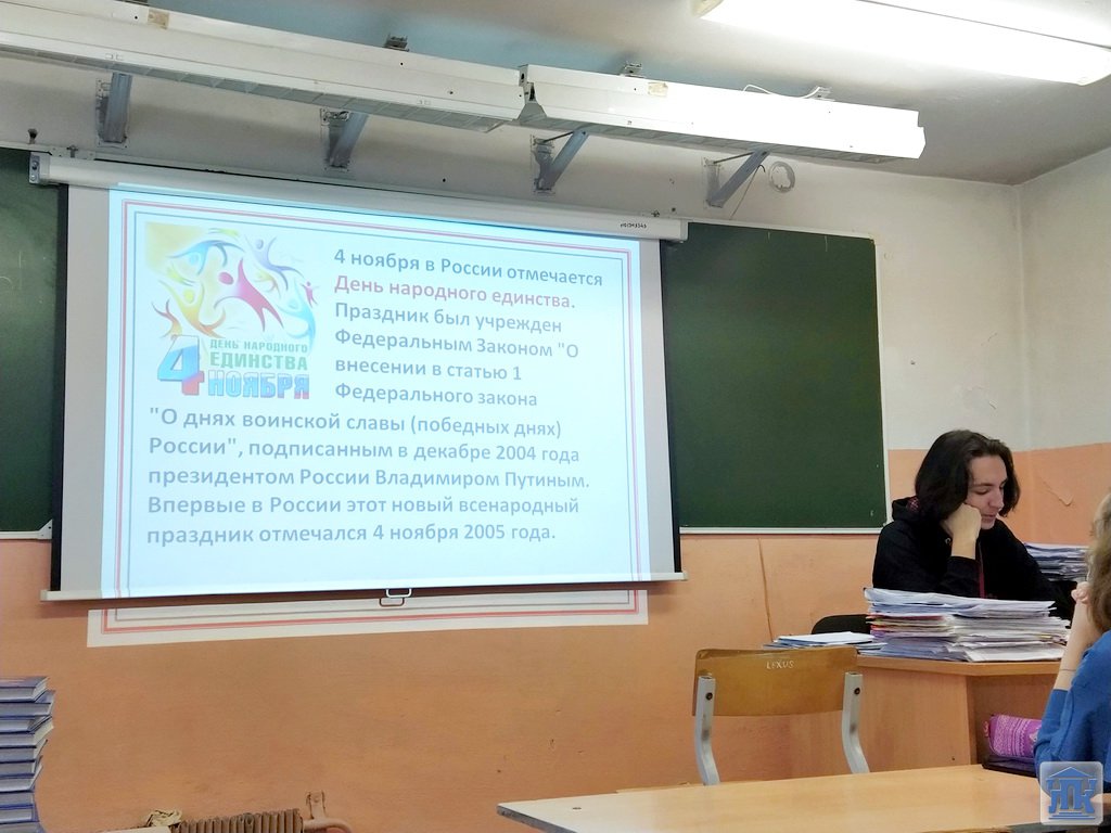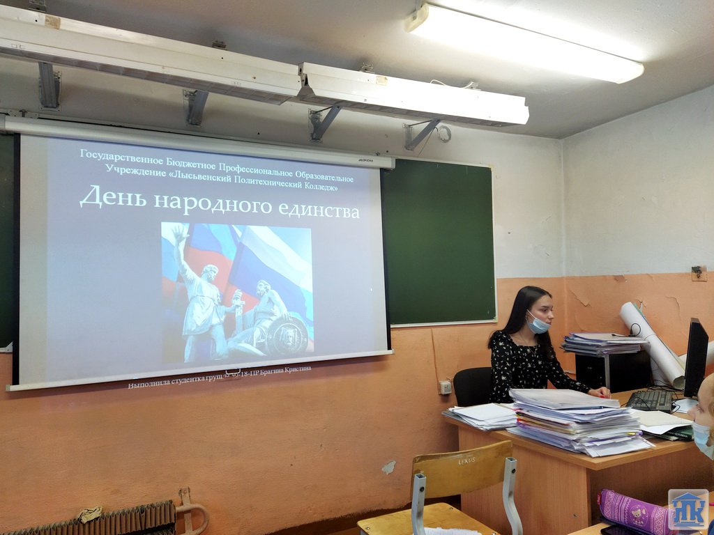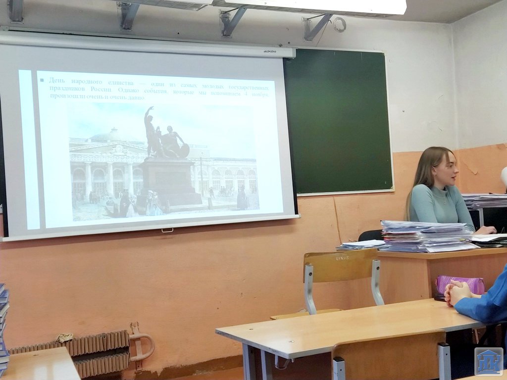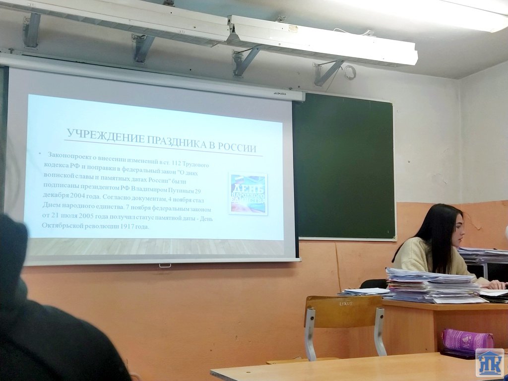 В преддверии праздника День народного единства в колледже прошло мероприятие, посвященное истории этой даты. Студенты группы 30-18-ПР с интересом узнали, что праздник, как объединяющий все народы России, был учрежден в декабре 2004 года, а впервые праздновался в 2005 году. День народного единства – это повод для всех граждан страны осознать и почувствовать себя единым народом.
