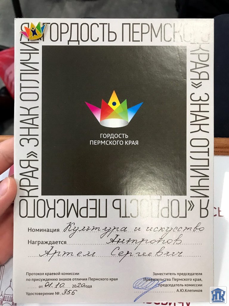 16 ноября в городе состоялось вручение юным лысьвенцам знака «Гордость Пермского края». Среди награжденных есть и студент нашего колледжа – Артём Антропов из 108 группы. Артём победил в номинации «Культура и искусство».