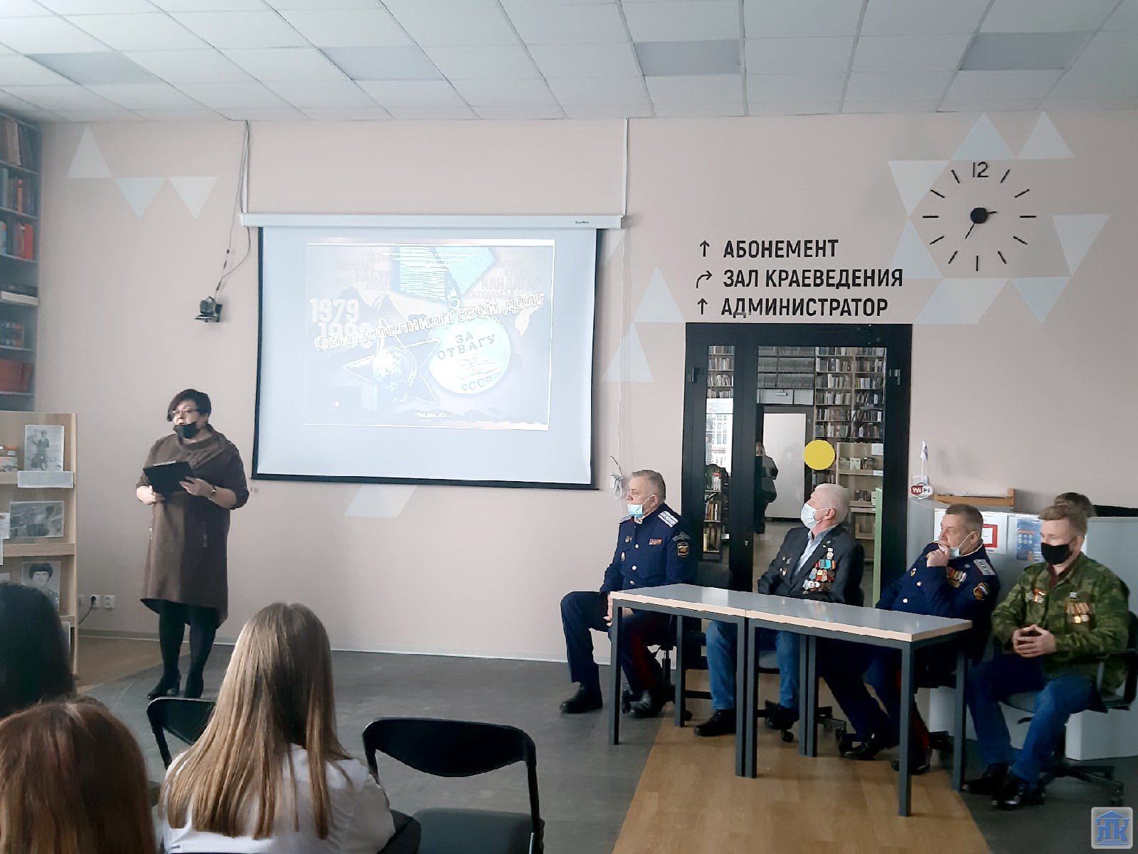 15 февраля – День памяти воинов-интернационалистов. В России каждый год отмечают эту дату – день вывода войск из Афганистана. «Они исполнили свой долг…» – это мероприятие посетили студенты группы 15-20-ПР в Центральной городской библиотеке. Студенты внимательно слушали о подвиге интернационалистов, отдавших свои жизни не за Родину, за чужую землю. Так сложилось, что воинам отечественной армии приходилось исполнять свой интернациональный долг далеко от границ своей Отчизны. Сотни тысяч бойцов прошли через нечеловеческие испытания в пустынях и горах, в тропиках и джунглях. Чтобы соотечественники не забывали о подвиге интернационалистов, и был учрежден особый день в феврале.