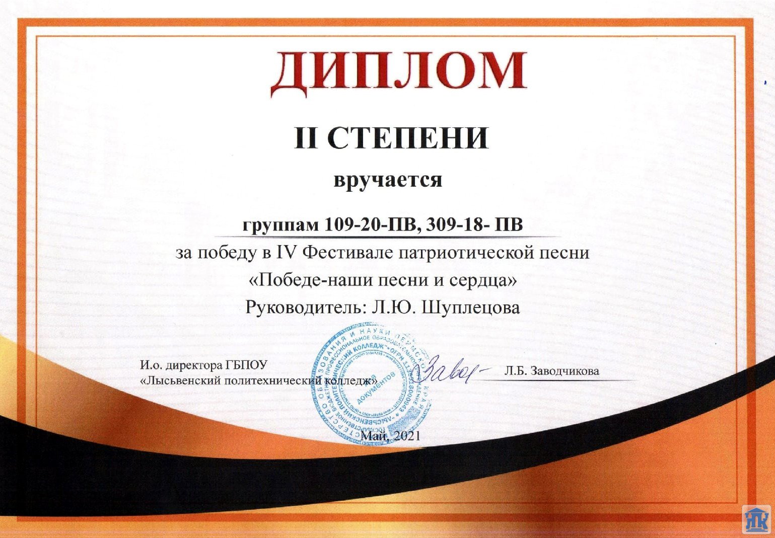 Подведены итоги фестиваля патриотической песни. Ребята, вы все большие молодцы! Спасибо всем участникам «Фестиваля патриотической песни – 2021»! Ребята, очень приятно было чувствовать вашу заинтересованность, спасибо большое за позитив, который от вас исходил во время ваших выступлений! Вы все очень старались, раскрылись и показали себя творческими, талантливыми студентами, которыми мы, педагоги, гордимся! Хотим сказать всем ребятам и их педагогам, что вы – молодцы! Желаем всем участникам творческих успехов, мира и добра! Мы очень счастливы что фестиваль состоялся, будем ждать новой встречи!