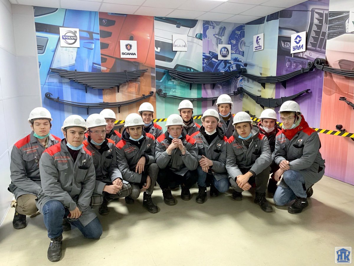 Экскурсия ребятам понравилась. На заднем плане общего фото видны номенклатура рессор и названия марок автомобилей, для которых работает ООО «Чусовской металлургический завод».
