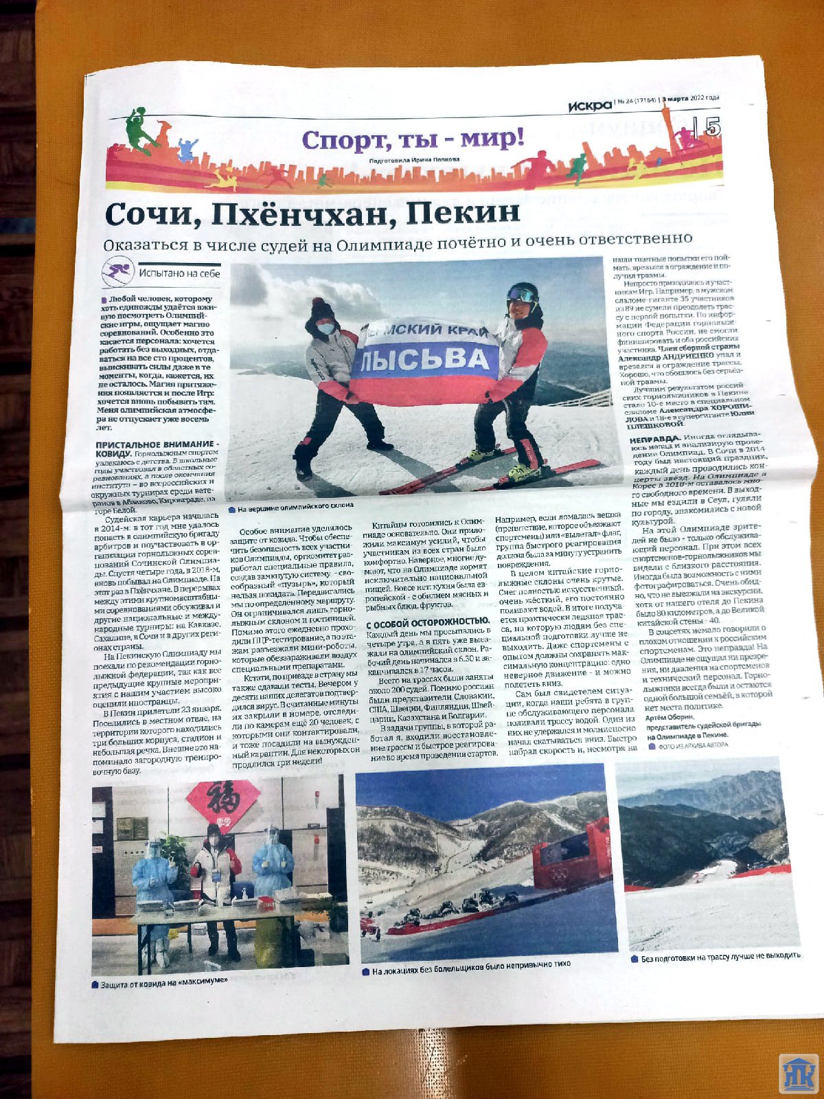 В Олимпийских играх участвовало 19 тысяч волонтеров. Они оказывали помощь в 12 видах волонтёрских услуг, таких как международные связи, организация и судейство соревнований, работа на объектах. На Пекинскую Олипиаду Оборин А.Н. поехал по рекомендации Российской горнолыжной федерации. Он имеет опыт участия в Олимпиадах в Сочи, в Корее, в Международных военных играх. Олимпийская атмосфера не отпускает его вот уже восемь лет. На Олимпиаде в Китае зрителей не было, только обслуживающий персонал и судьи. Китайцы очень щепетильно относятся к своему здоровью. Контроль на «ковид» был очень жесткий. К российским спортсменам и судьям отношение было хорошее. Китайцы – народ доброжелательный. У Артема есть мечта – поехать на Олимпиаду в Италию.