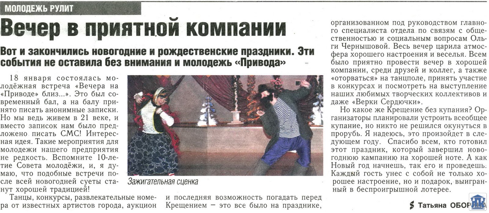 25 января в газете "Электротяжмаш-вести" была опубликована заметка студентки группы 48-ВТ Татьяны Обориной.