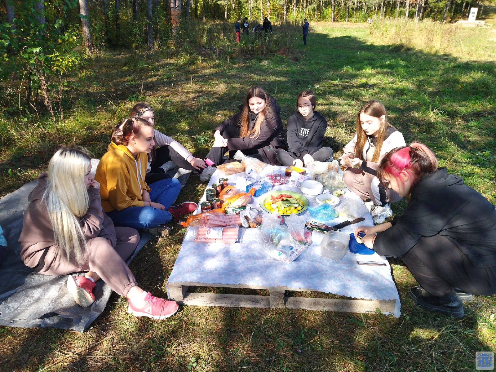 Девчонки накрывали на стол, а мальчишки организовывали костёр и готовили свою фирменную «кашу из топора». Обед получился на славу!
