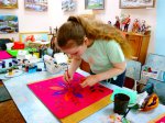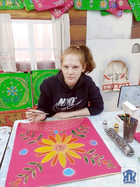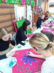 Участники конкурсной программы смогли расписать платочки для оформления праздника и создать свои самобытные работы, расписать часть доски и символ праздника – балалайку – в технике уральской росписи «Обвинская роза».