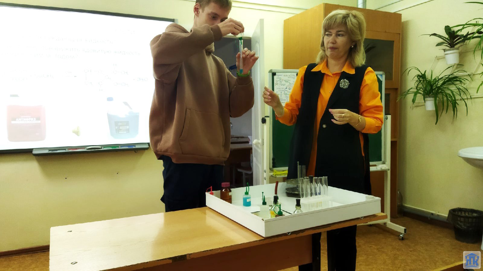 Дружно работая в составе команд «КАМАЗ», «ЛАДА» и «КИА», студенты 203-21-МАВ с большим азартом постигали химические азы профессии 23.01.03 «Автомеханик». Ребята узнали о химическом составе и свойствах охлаждающих жидкостей, научились качественной химической реакции на многоатомные спирты определять ядовитый этиленгликоль антифриза.