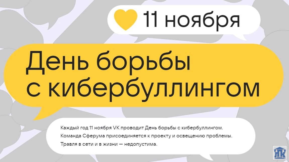 Каждый год 11 ноября социальная сеть ВКонтакте проводит День борьбы с кибербуллингом. Команда Сферума присоединяется к проекту и освещению проблемы. Наш колледж также присоединился к проекту и провел внеклассное мероприятие на тему «Кибербуллинг в сети».