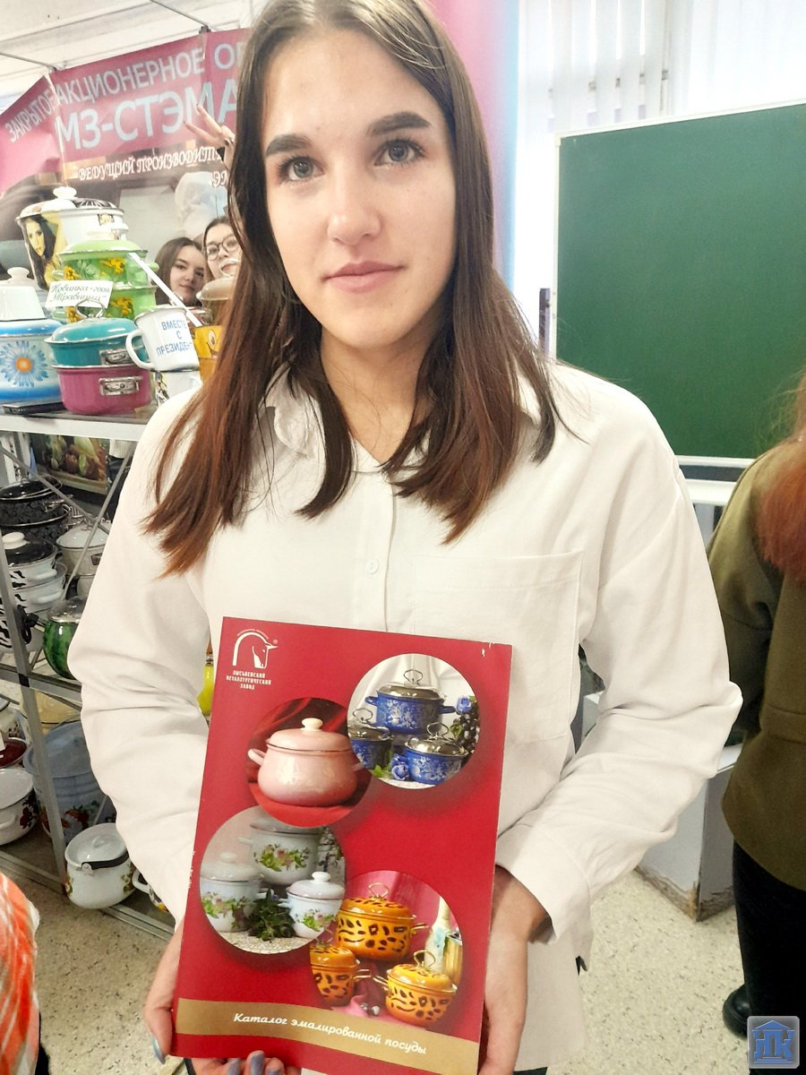 Отзыв Ардуановой Алины: «Было увлекательно и интересно слушать историю происхождения эмали. Нам рассказывали о том, что это очень ценная продукция, она популярна по всему миру. Это даёт надежду на то, что мы умеем делать качественную посуду и будем этим заниматься, чтоб весь мир знал, что только в России это всё делается с душой и гордостью. Мы увидели, как на самом деле важна специальность контролёра, что без них никто бы не осмелился купить несоответствующую продукцию. Контролёр нужен и важен везде и всегда. Мы увидели, как контролёр терпелив и внимателен, не все могут быть усидчивыми, как они. Сегодня мне дали возможность поставить штамп на соответствующую продукцию, и я с уверенностью скажу, что её потребитель будет пользоваться ею, и не пожалеет о том, что взял именно эту красоту. Люди, работающие там, дали понять, что каждую частичку работы нужно прорабатывать и уметь это делать быстро и уверенно. Экскурсия была незабываемой. Спасибо, что дали возможность посмотреть, потрогать, послушать!».