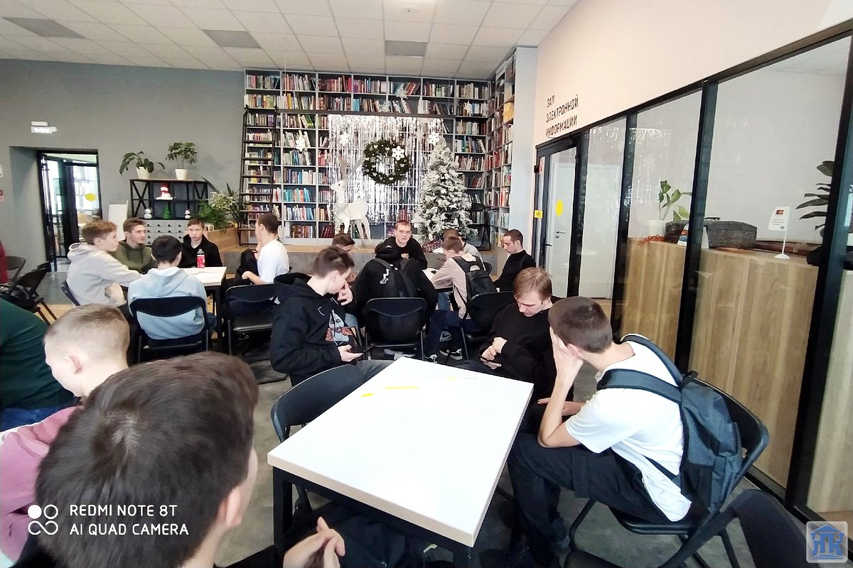 15 декабря студенты групп 202-21-ЭМ и 207-21-ТУ в сопровождении классных руководителей Стяжковой Людмилы Васильевны и Булатовой Анастасии Анатольевны участвовали в интеллектуальной игре «Ум за разум» в городской библиотеке.