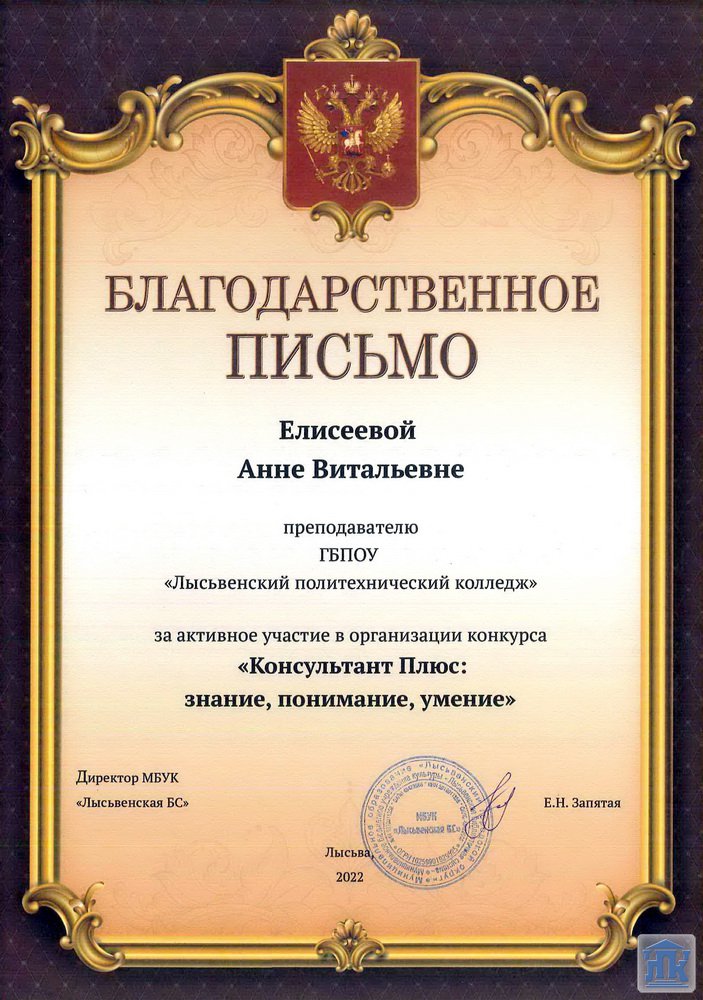 16 декабря в Лысьвенской городской библиотеке состоялось подведение итогов конкурса «Консультант Плюс: знание, понимание, умение».