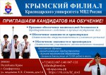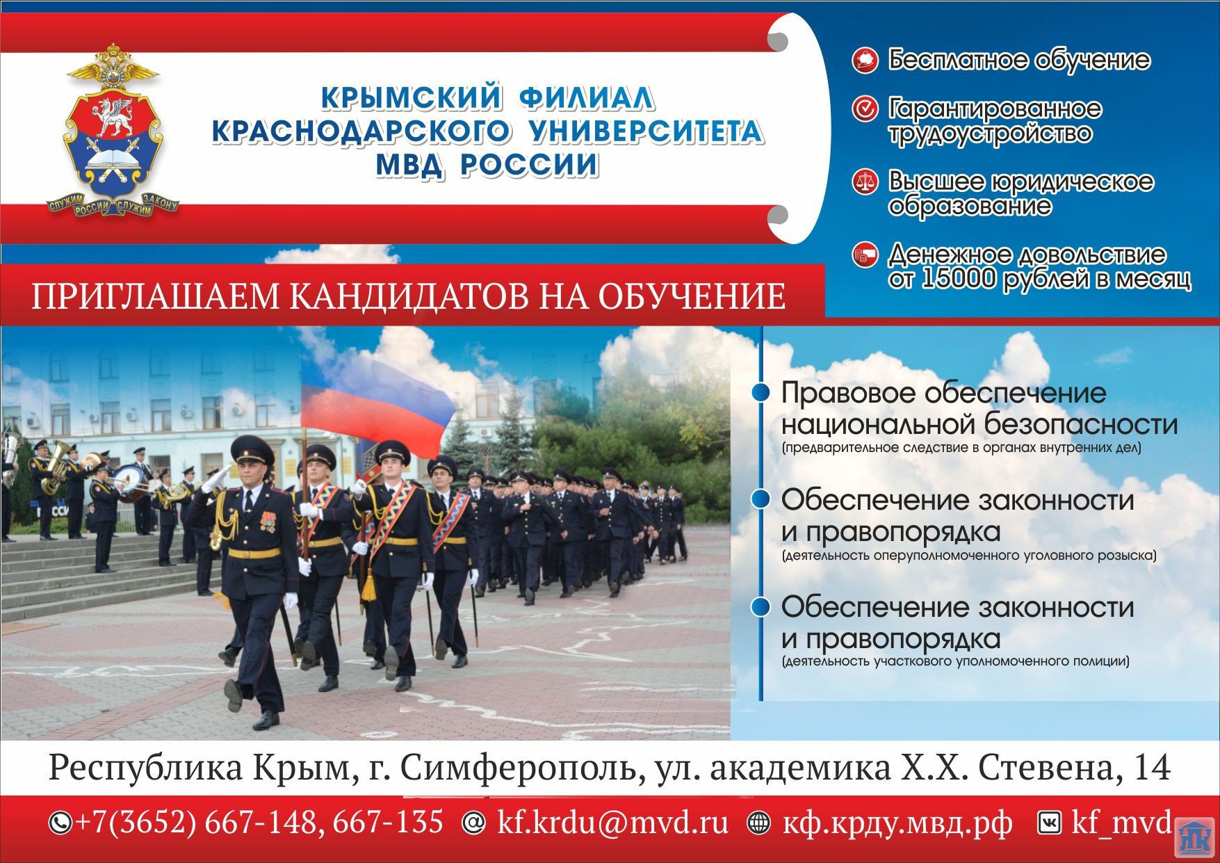 В 2023 году Крымский филиал Краснодарского университета МВД России (далее - филиал) будет осуществлять очередной набор на обучение по очной форме на основе «прямого набора».