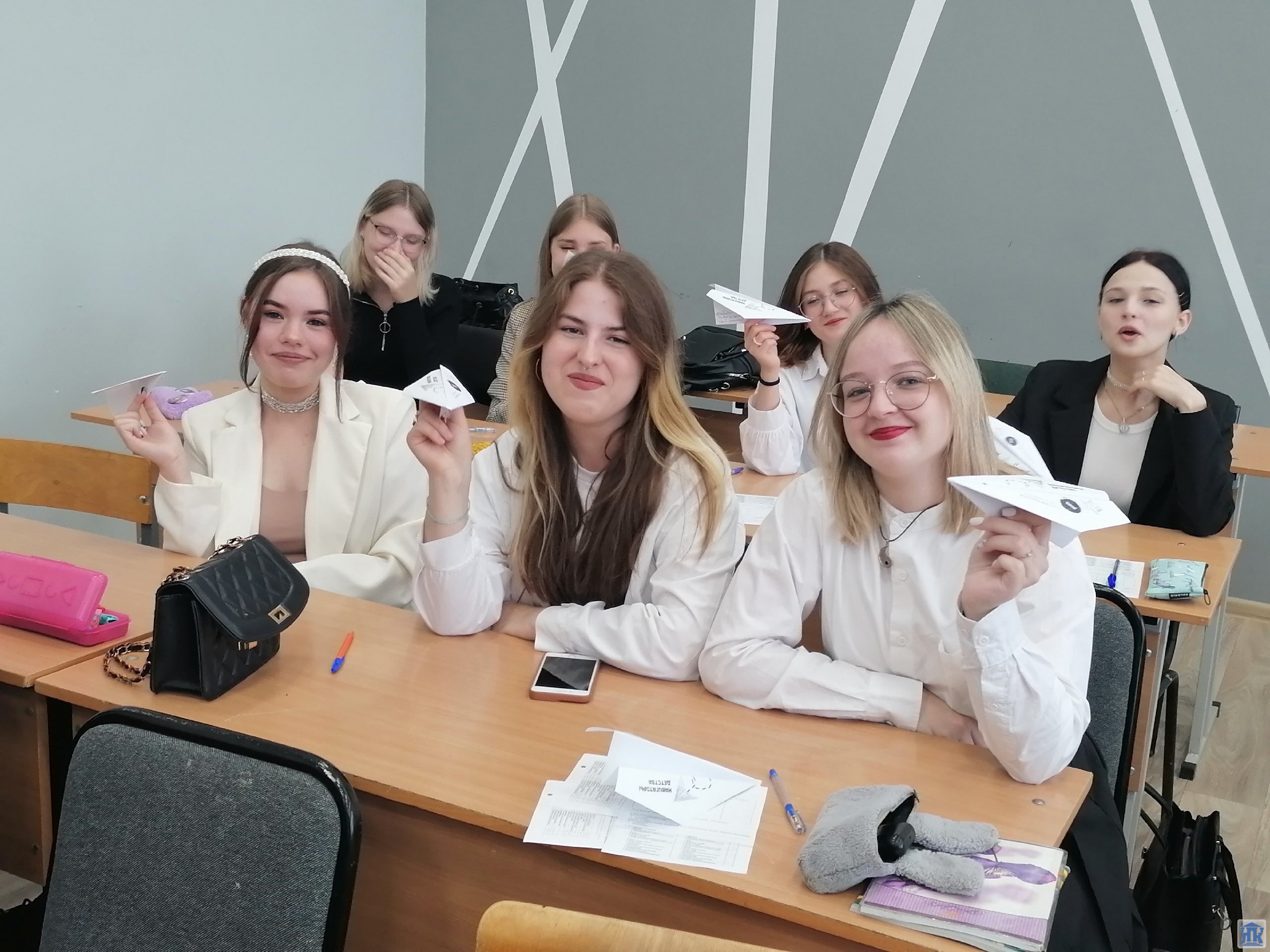 Насыщенный день: торжественная линейка, первые классные часы. Кроме того, ребята стали первыми участниками новой традиции «Самолётик будущего». Студенты старших курсов написали на самолётиках напутственные слова для студентов первокурсников, торжественно им вручили. На первой встрече первокурсники раскрыли самолетики, прочли пожелания и сложили в капсулу времени.