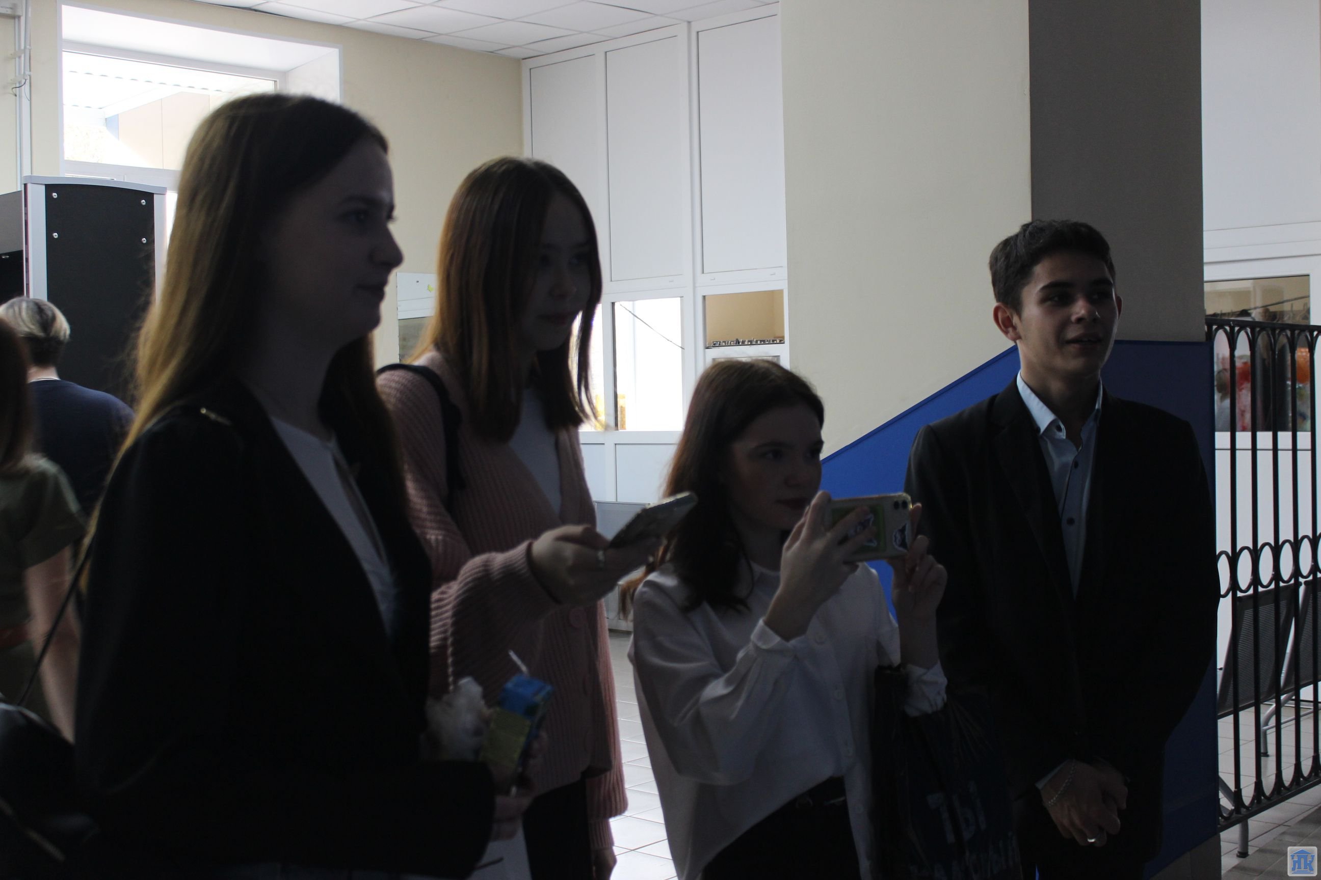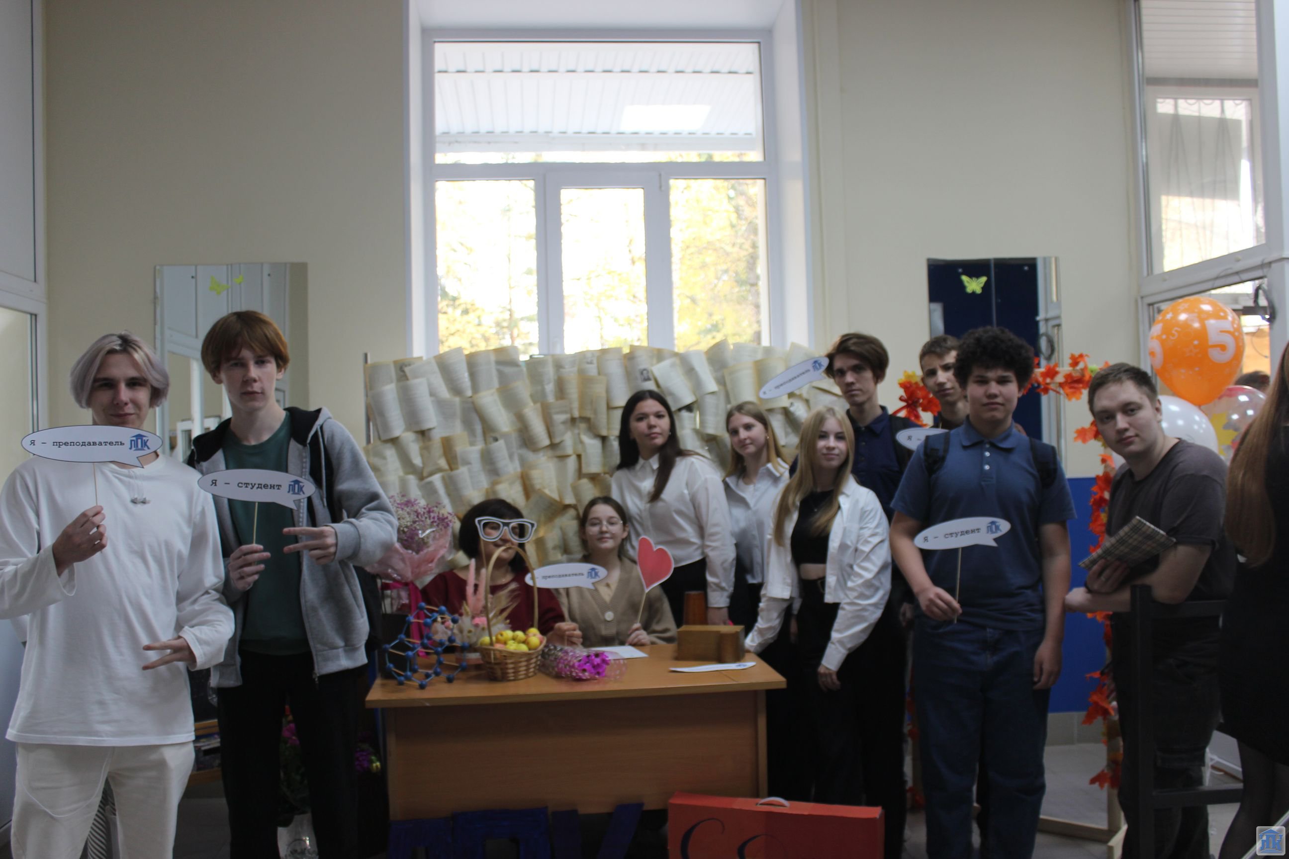 Особенный и праздничный день начался с подготовки к мероприятию. Как много нового и необычного было сделано руками ребят. На первом этаже всех встречала фотозона, созданная руками студентов. На фотографирование пригласили всех желающих: студентов, преподавателей и ветеранов. В этот день студенты единогласно решили освободить преподавателей от работы и провести День самоуправления. Все учебные занятия проводили сами студенты. Некоторые потом сознались, что пять пар – это очень сложно. Роль администрации на себя взяла группа 56-19-ТМ, которая с удовольствием выполняла нелегкую работу.
