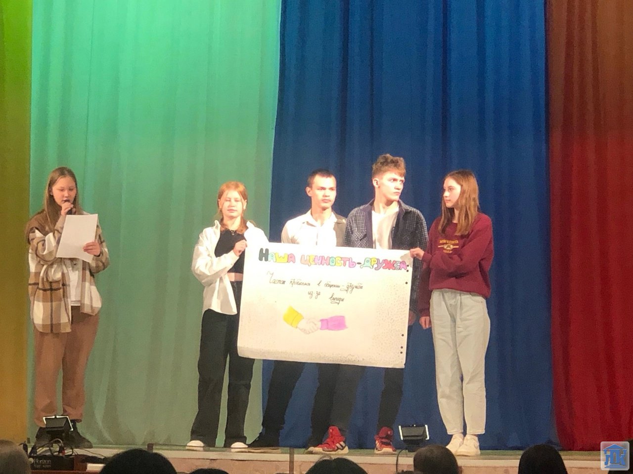 Дмитрий Голышев, студент 3 курса: – Сегодня я был с активом колледжа на форуме «Тренинг-семинар: время первых», организованном на базе «ДД(Ю)Т». Мне очень всë понравилось: и ребята, которые так и излучали позитив своими улыбками, и организаторы, которые поднимали настроение и мотивацию двигаться дальше, и станции, на которых нужно было зарабатывать жетоны. Мы с командой больше ходили на станцию, где нужно было петь и танцевать, да и вообще, мне кажется, что наша команда была самой юморной и позитивной. Вторая часть мероприятия также была очень интенсивной. Нам обозначили ценности, про которые нужно было написать проект. Наша группа очень старалась раскрыть ценности нынешнего мира, такие как «единство народов России», «Добро и справедливость». Мы в группе максимально сдружились и выложились на все 100%, подготовив интересную сценку, включающую в себя сразу 2 ценности. Мы заняли второе место! Хочу сказать спасибо организаторам данного форума за их позитив и умение поднимать мотивацию. «Мотивацию надо подняяять!».