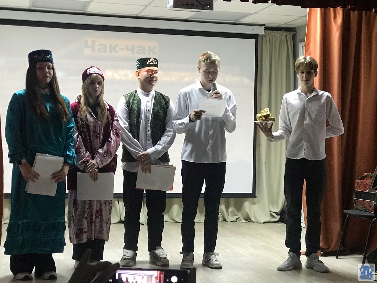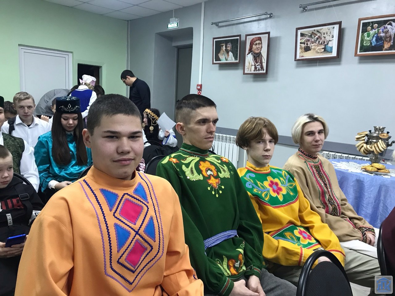 Мероприятие прошло отлично! В уютной атмосфере, в прекрасно оформленом зале – это все благодаря Ольге Алексеевне Никитиной. Ребята надели национальные костюмы, подготовили презентации о народах, проживающих в Пермском крае, выступали на сцене, танцевали, представляли национальные блюда и традиции, читали стихи.