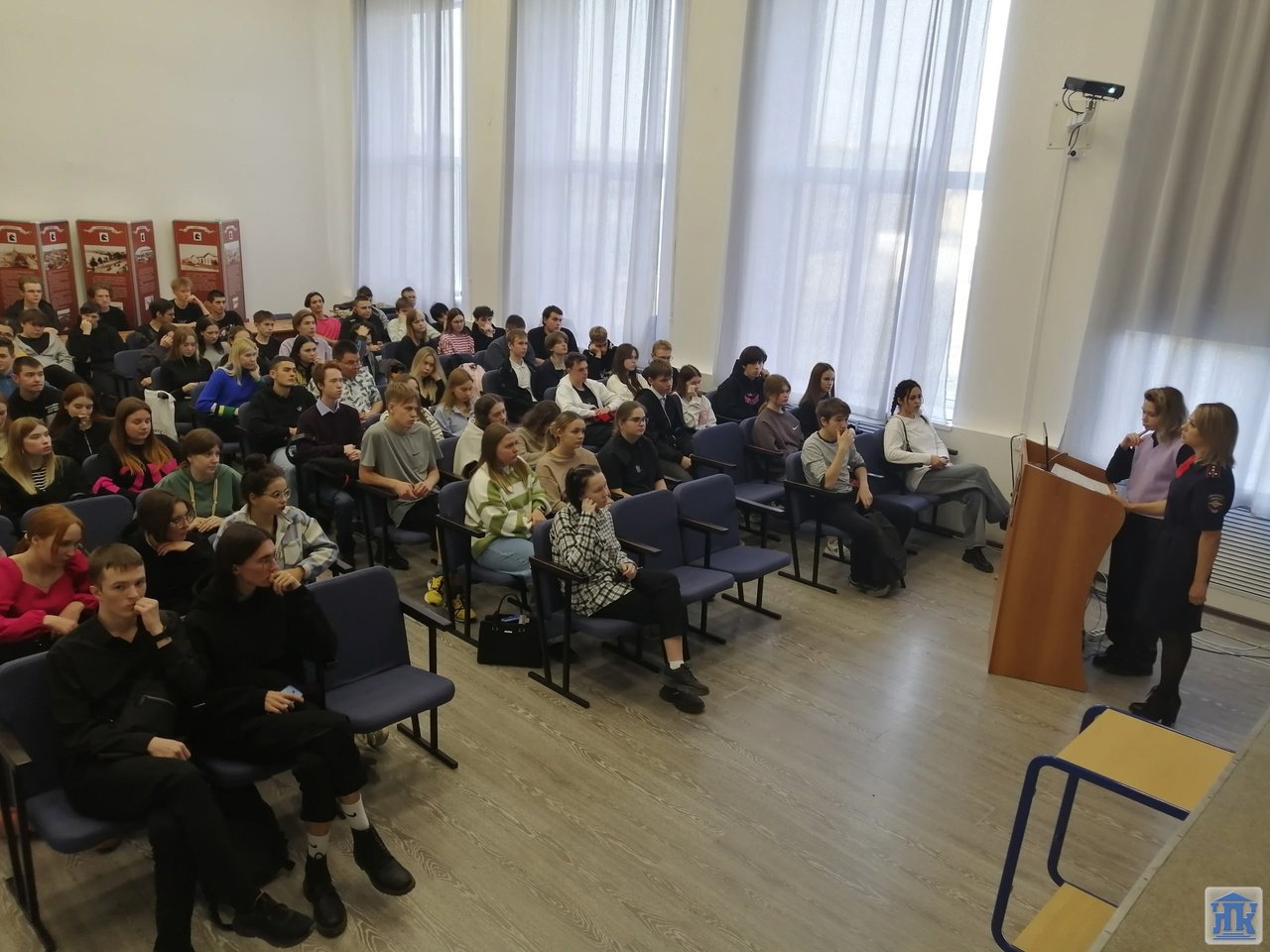 В рамках межведомственного взаимодействия Елисеев Борис Валерьевич, старший оперуполномоченный отделения по контролю за оборотом наркотиков отдела МВД России по ЛГО, капитан полиции, обозначил основные направления Всероссийской межведомственной комплексной оперативно-профилактической операции «Дети России – 2023», направленной на профилактику наркомании среди молодежи. Борис Валерьевич рассказал студентам о выявлении фактов их вовлечения в преступную деятельность, связанную с незаконным оборотом наркотических средств и психотропных веществ, а также о последствиях употребления наркотиков и об ответственности за участие в их незаконном обороте.