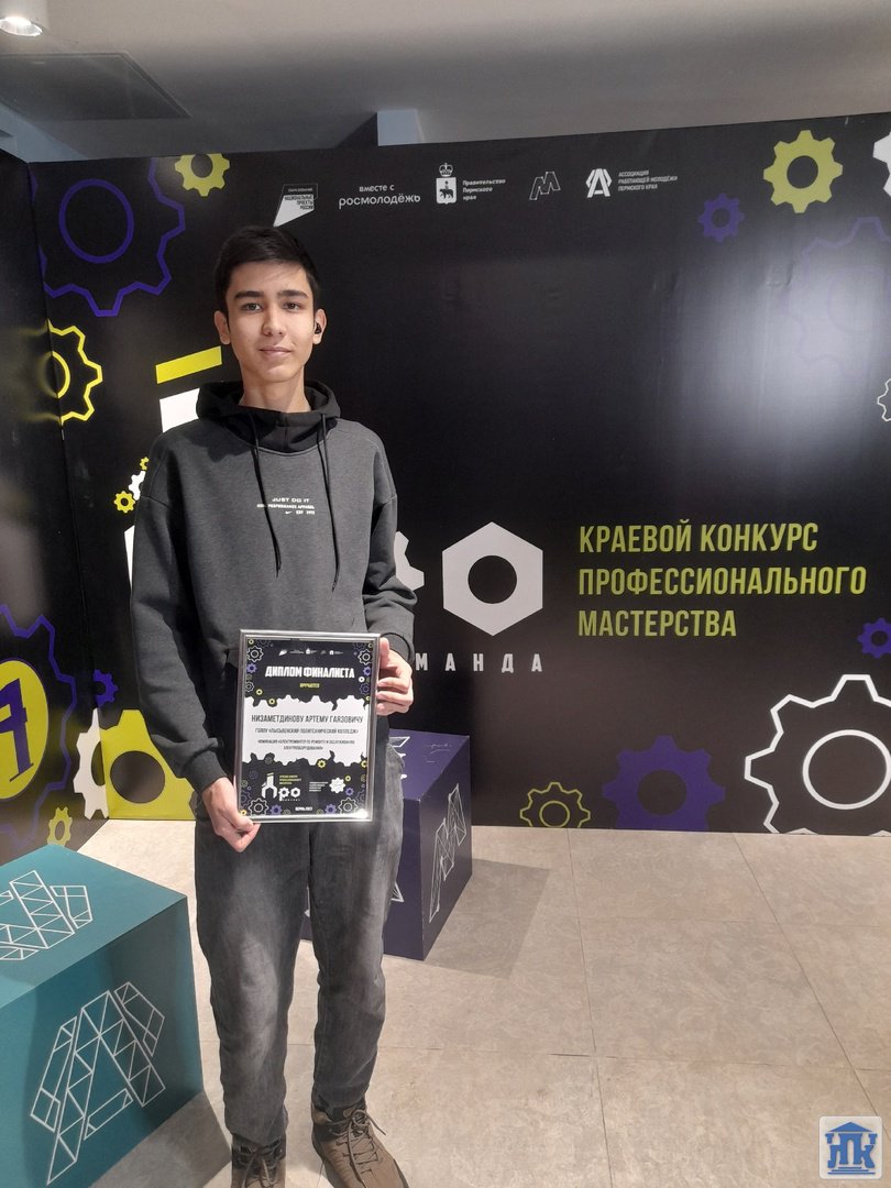 Все участники успешно защитили честь колледжа. Получили дипломы финалистов. Александр Быков заработал приз за третье место. Все ребята – большие молодцы! На церемонии награждения ребят поздравил начальник управления профессионального образования Министерства образования Пермского края И.В.Бочаров и пожелал им шикарных профессиональных перспектив.