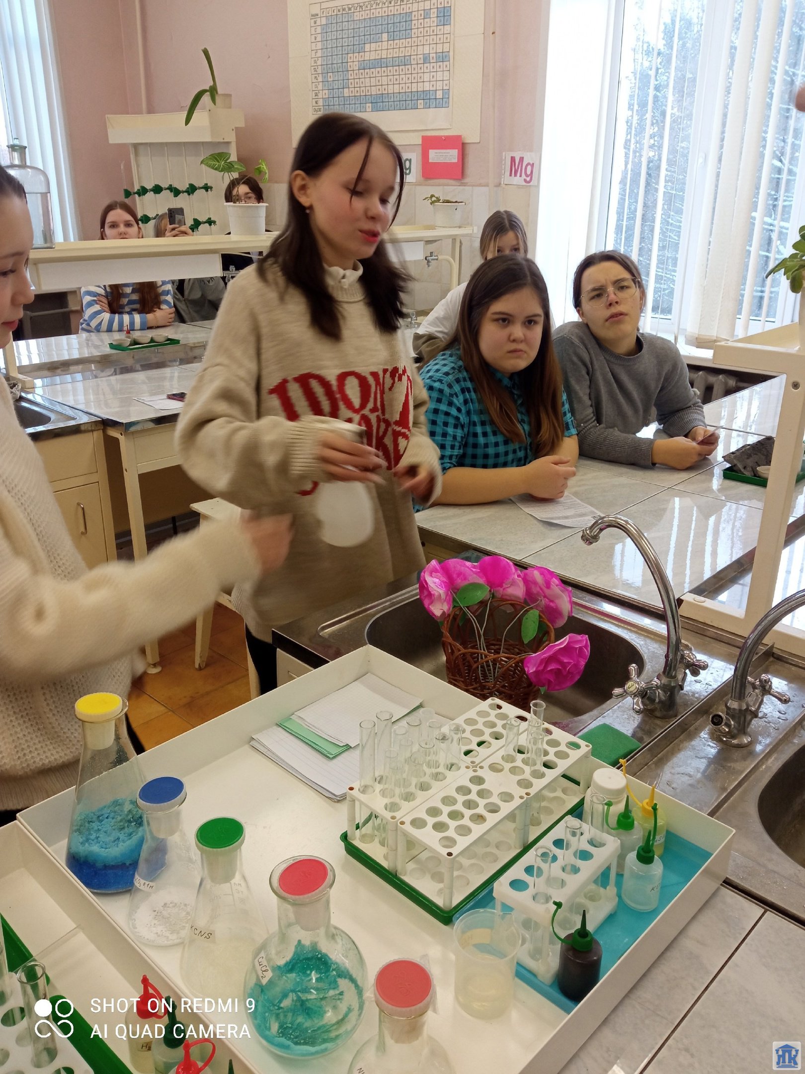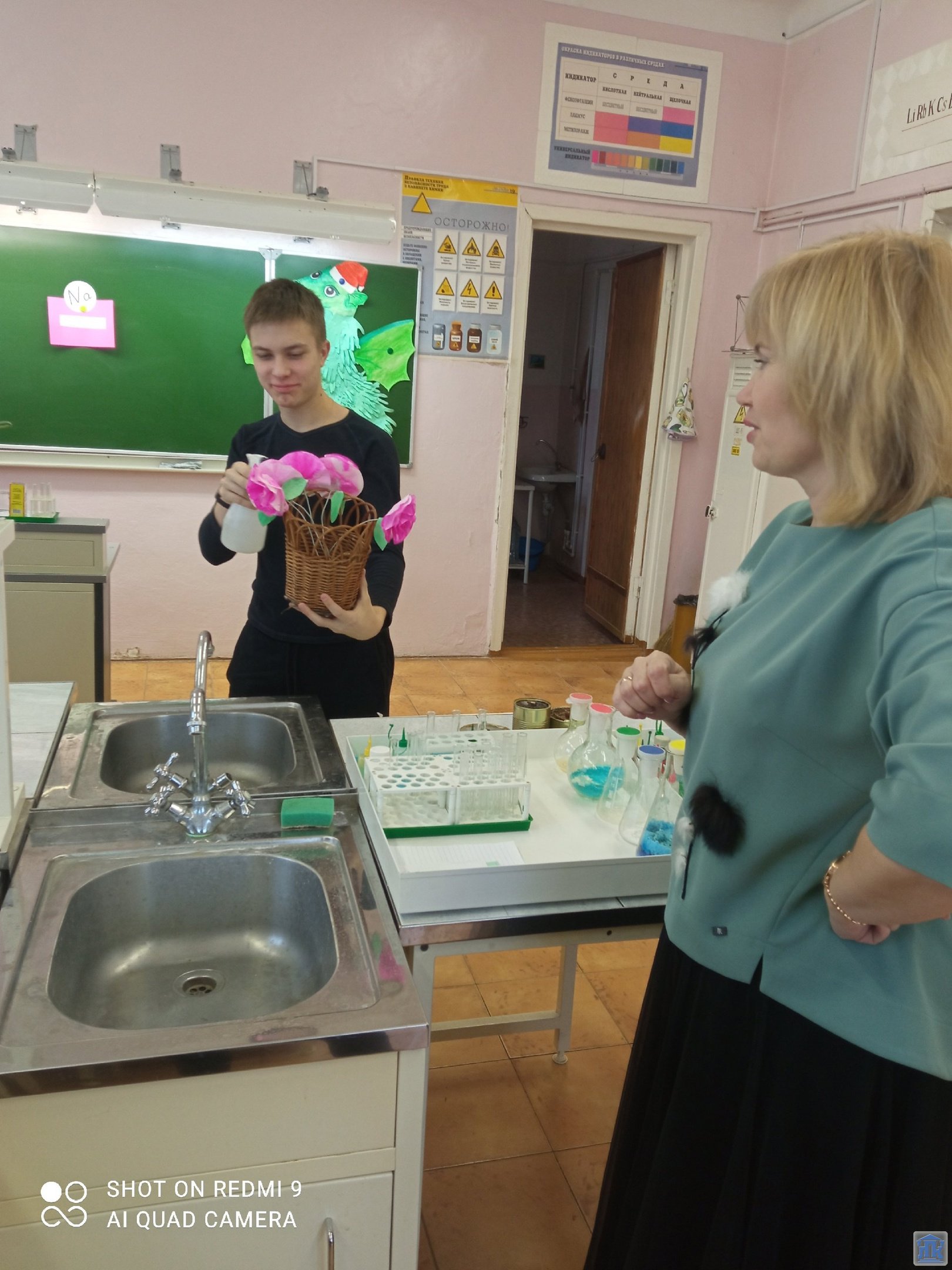 Затем заглянули в лабораторию химии к Луневой Любови Ивановне, которая рассказала о специальности 44.02.01 «Дошкольное образование». Также она познакомила ребят с программой практического обучения по химии, провела занимательные опыты «Химический хамелеон», «Букет любимой», «Самый взрывоопасный».