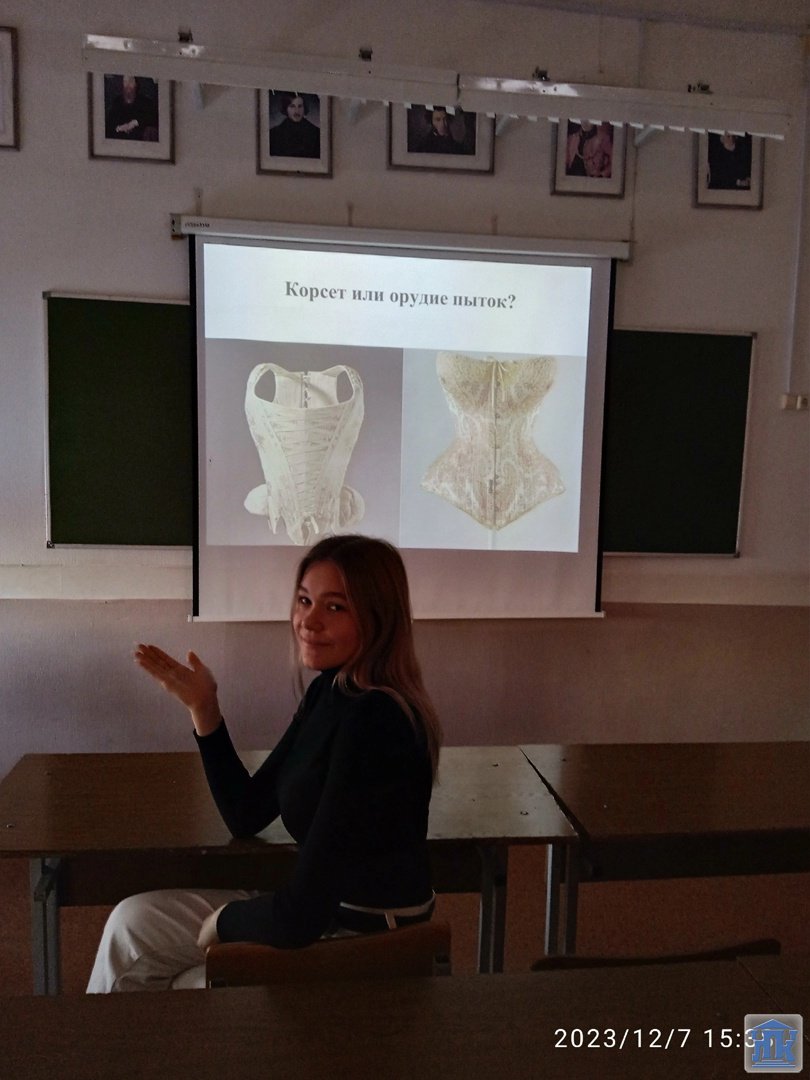 Что лучше – шкура или корсет, туфля с носком до колена или платформа 20 см? Что такое помандер, кюрдан и зибеллино? Кто и зачем придумал моду, когда это кончится, и почему модельеры всё время копируют 7 декабря прошлое? С этими и другими вопросами мы попытались разобраться 7 декабря на интерактивном мероприятии «История женской моды» (с древнейших времён – по 21 век), которое прошло в группах 10-23-ДО и 40-20-ДО.