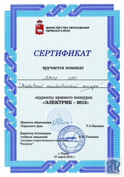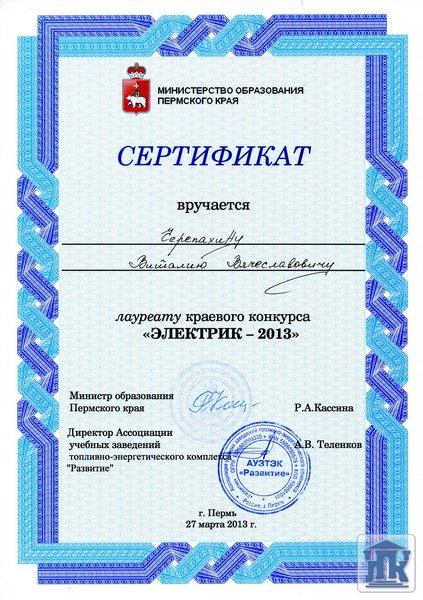 27 марта на базе Пермского горного техникума состоялся краевой конкурс «Электрик-2013» среди студентов, обучающихся по специальности 140613 «Техническая эксплуатация и обслуживание электрического и электромеханического оборудования».