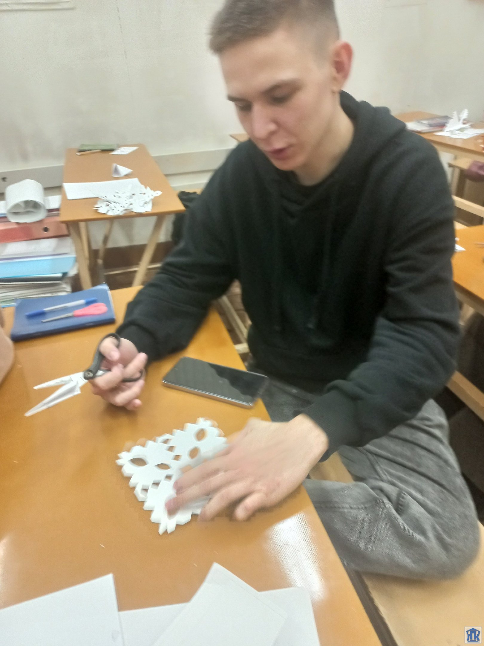 Студенты группы 42-20-0МД активно готовятся к встрече Нового года. Ребята вырезают снежинки – символ зимы – и украшают лабораторию специальности «Обработка металлов давлением».