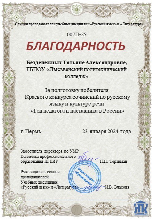 Министерство образования и науки Пермского края"Лысьвенский политехнический колледж" |