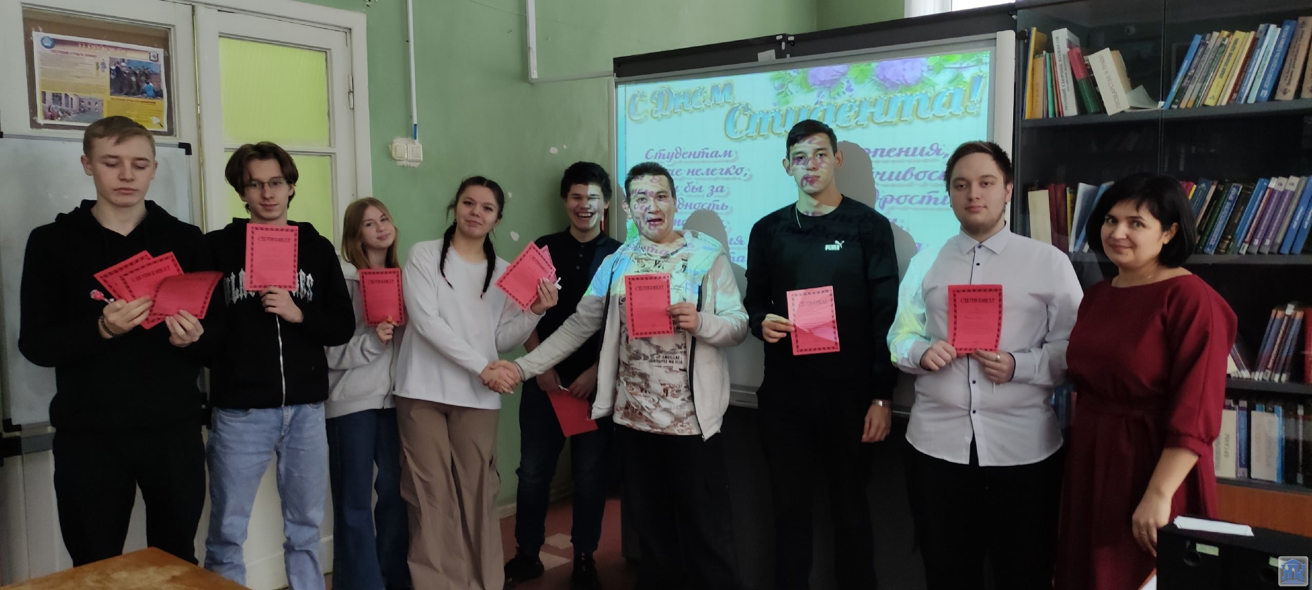 Выражаю благодарность Елене Валентиновне за интересный классный час. Поздравляю всех студентов с Днем студента и желаю успехов в учебе!