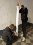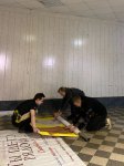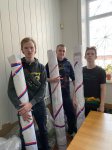 Разглаживали, а после скручивали в рулоны старые баннеры, фиксировали изолентой и обклеивали клейкой лентой с символическим оформлением.